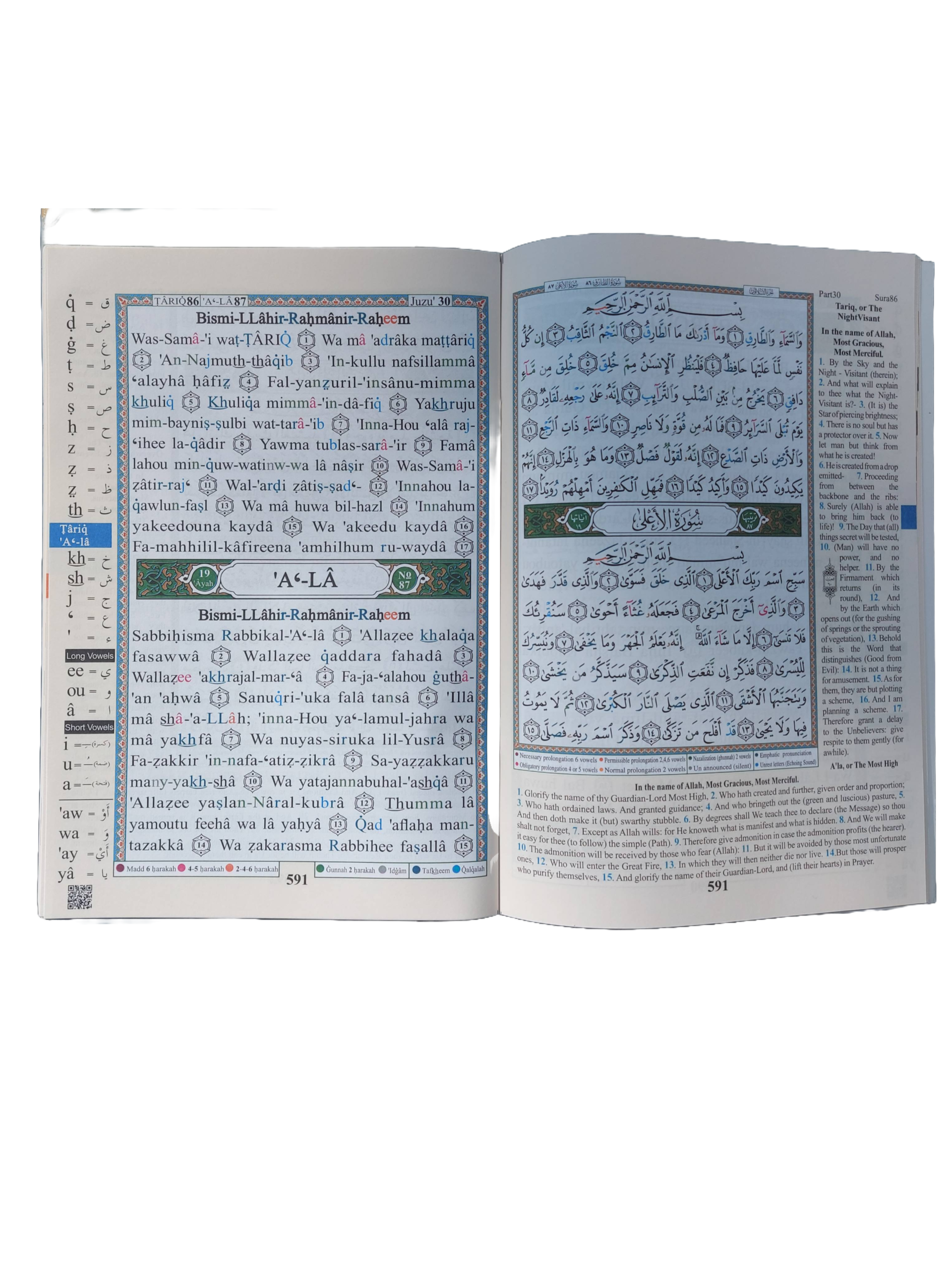 Tajweed Koran Jus Amma (30), med tajweed fargekoder og arabisk tolkning. Veldig praktisk for en nybegynner og barn. Kan kjøpes med Tajweed bokskille og uten.