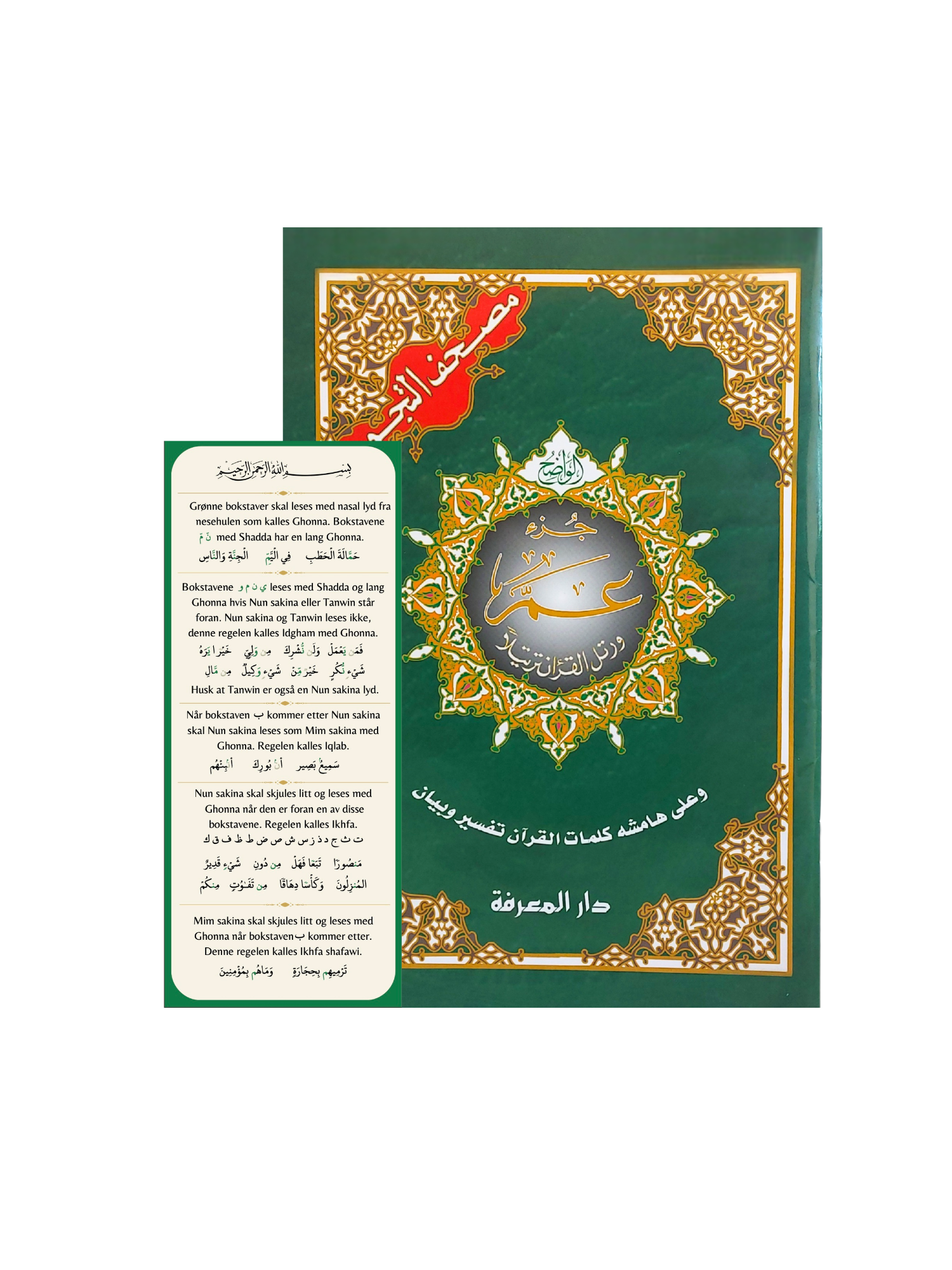 Tajweed Koran Jus Amma (30), med tajweed fargekoder og arabisk tolkning. Veldig praktisk for en nybegynner og barn. Kan kjøpes med Tajweed bokskille og uten.